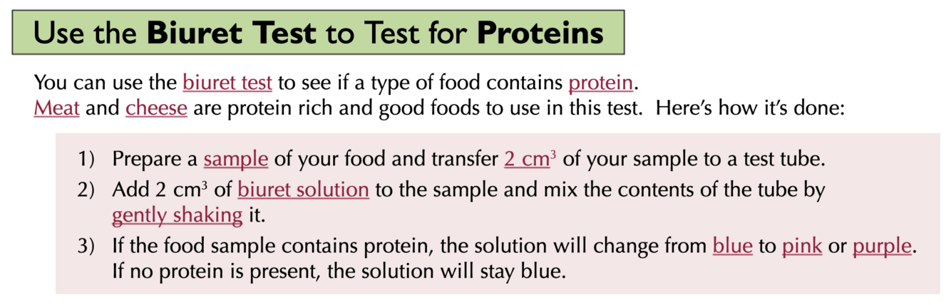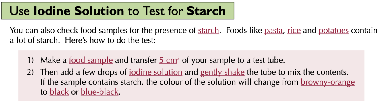 If the food sample contains glucose, the solution will change from blue to green or yellow (in low concentrations) or brick red (in high concentrations)