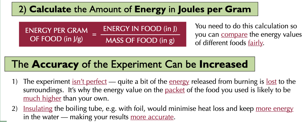 energy in food - how do you calculate the energy in joules? and how can one increase accuracy?