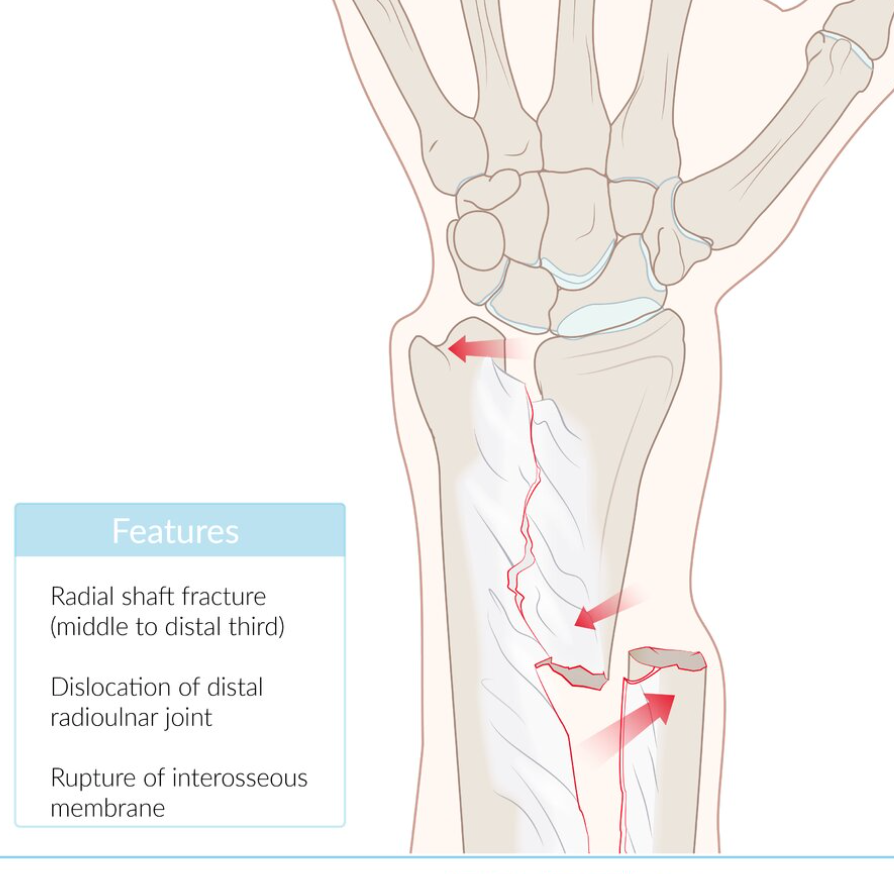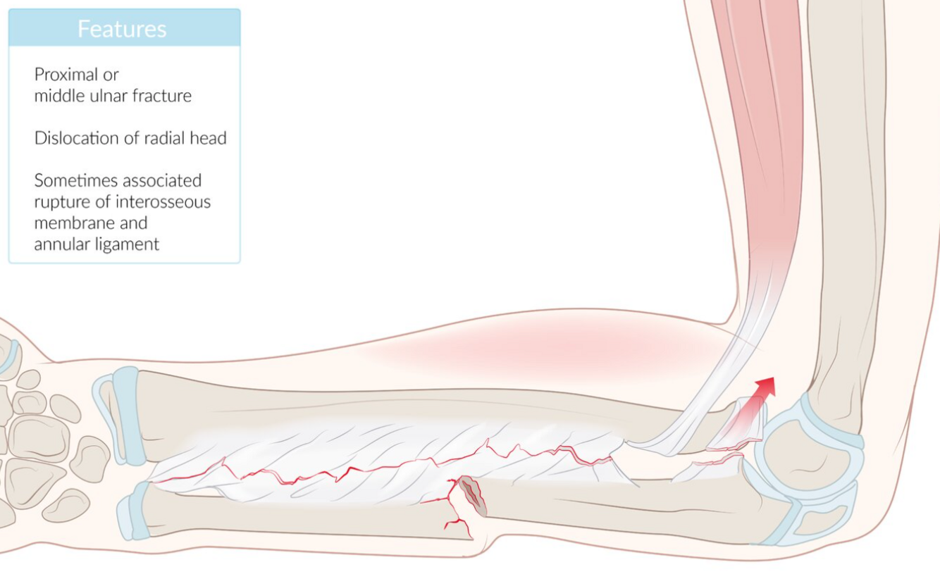 fracture of the proximal or middle ulna with dislocation of the radial head