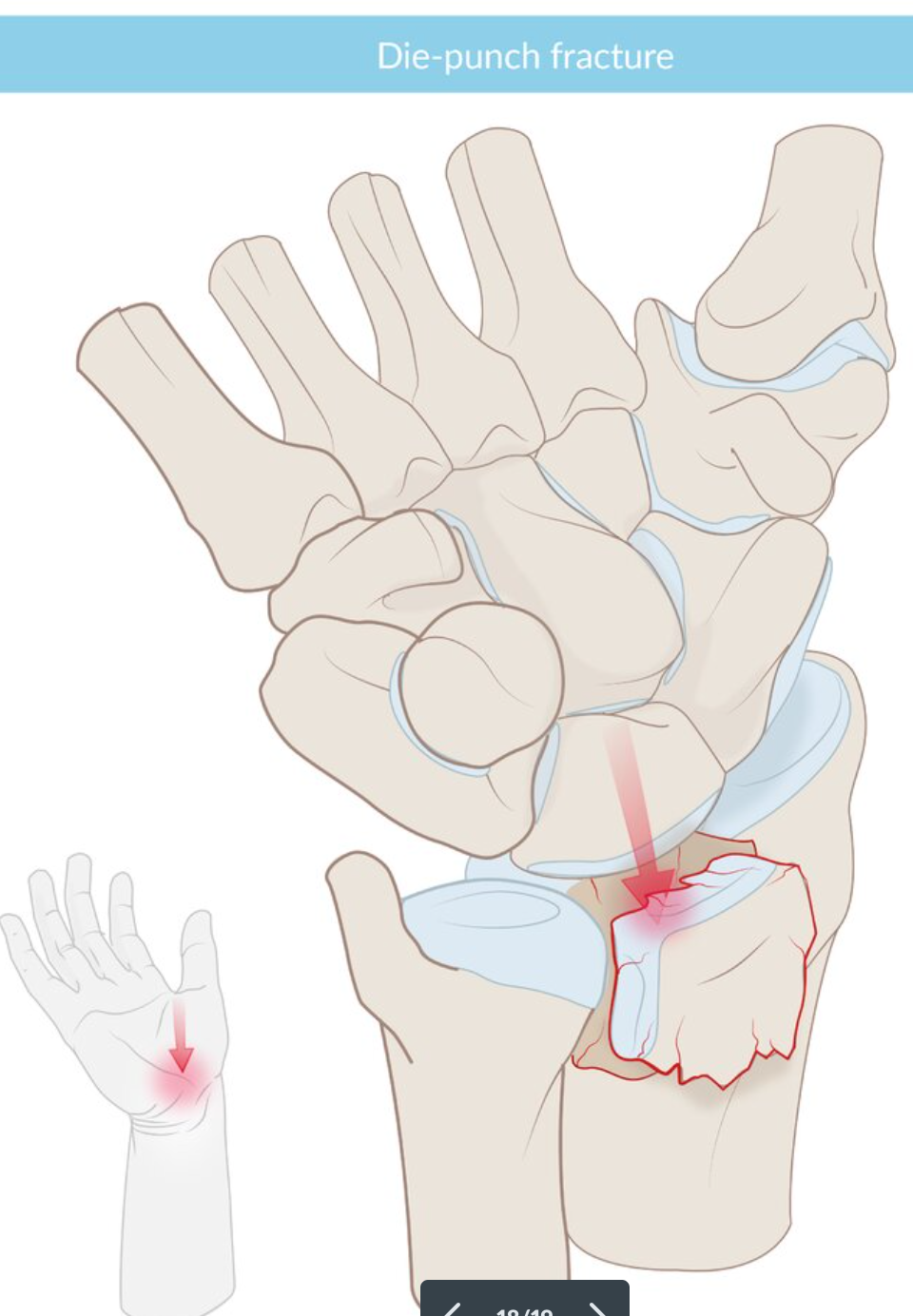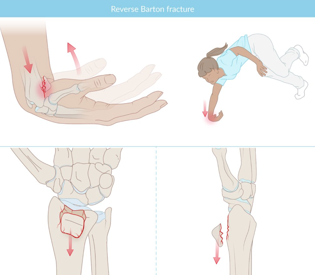 radial avulsion and dorsal displacement of the radiocarpal segment of the radius