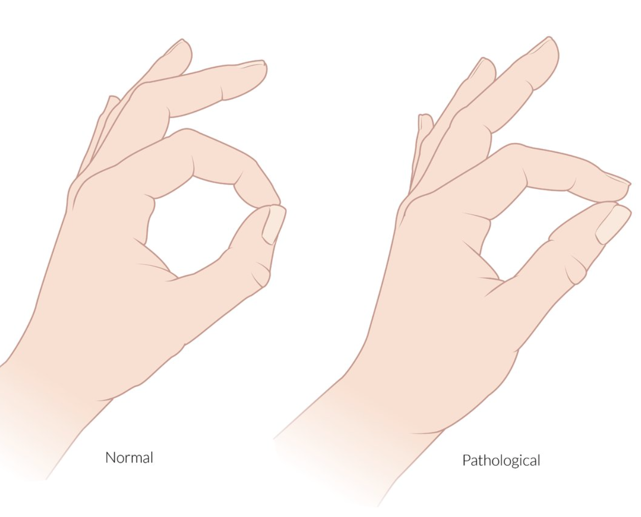 - paresthesias of the dorsal spects of the thumb, second and third fingers