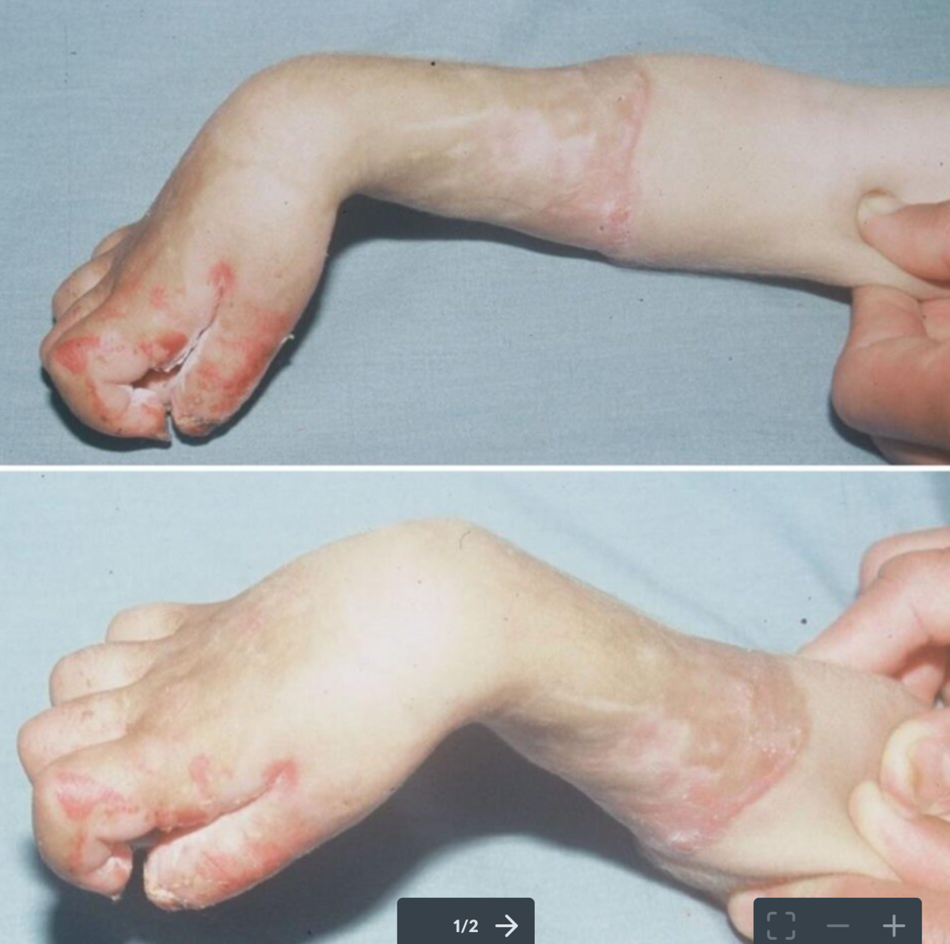 neurological injury is rare, but anterior interosseous nerve palsy can occur