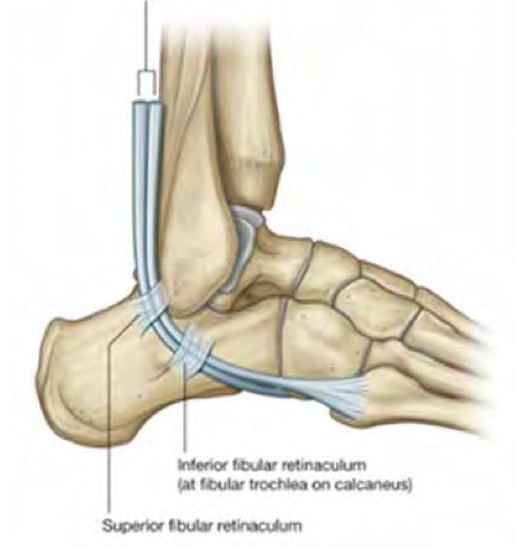 Inferior band: Y shaped, extending from medial malleolus and medial medial side of plantar aponeurosis to superolateral calcaneus