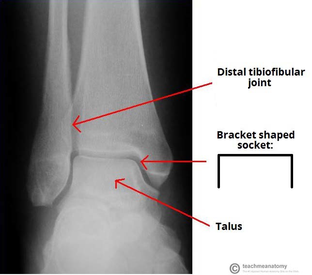 tibular and fibular held ogether bu the tijiofibuilar ligaments at distal tiiofiilar joint , together they form a mortise, a breacket sahped socket wehre the trochlea of the talus fits into