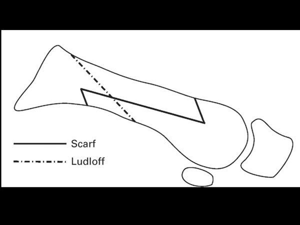 What are Scarf and Ludloff osteotomies used for? Differentiate them in one sentence.