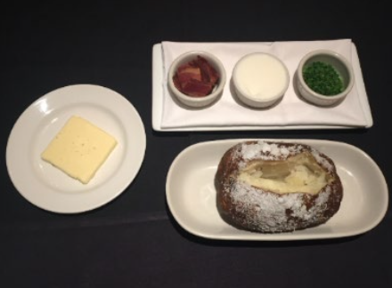 Our fresh, salt-crusted baked potatoes are accompanied by chives, sour