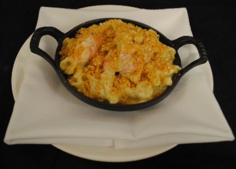Baked Campanelle pasta and fresh Lobster meat tossed in a Mascarpone, Havarti, and Grana Padano cream sauce, topped with grated white cheddar and Panko bread crumbs.