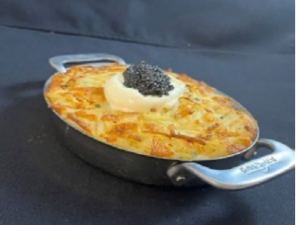 Shredded potatoes, topped with Crème Fraiche and Royal Ossetra caviar.