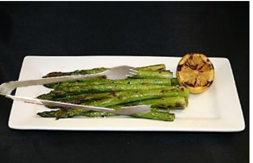 A large order of freshly grilled asparagus spears, drizzled with Lemon Oil and finished with Fleur de Sel.