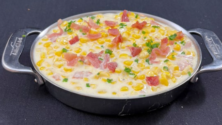 Sautéed summer corn cut fresh off the cob, finished with bacon and corn-infused cream.