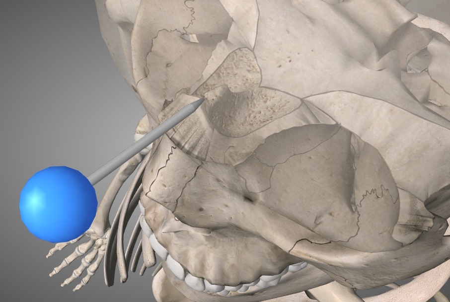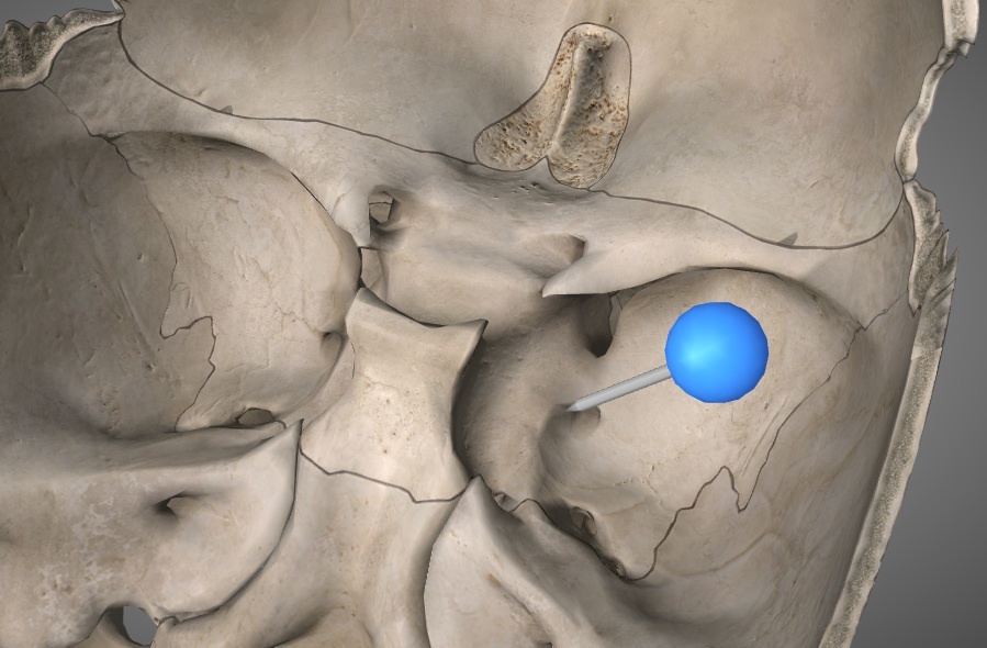 Identify what would be found at pin. *frontal bone is faded