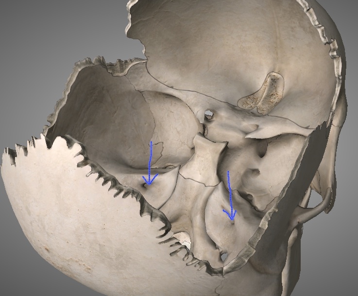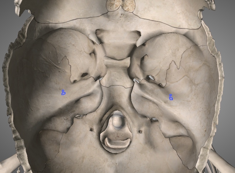 Middle cranial fossa - Hiatus for geater petrosal n. of temporal (petrosal) bone