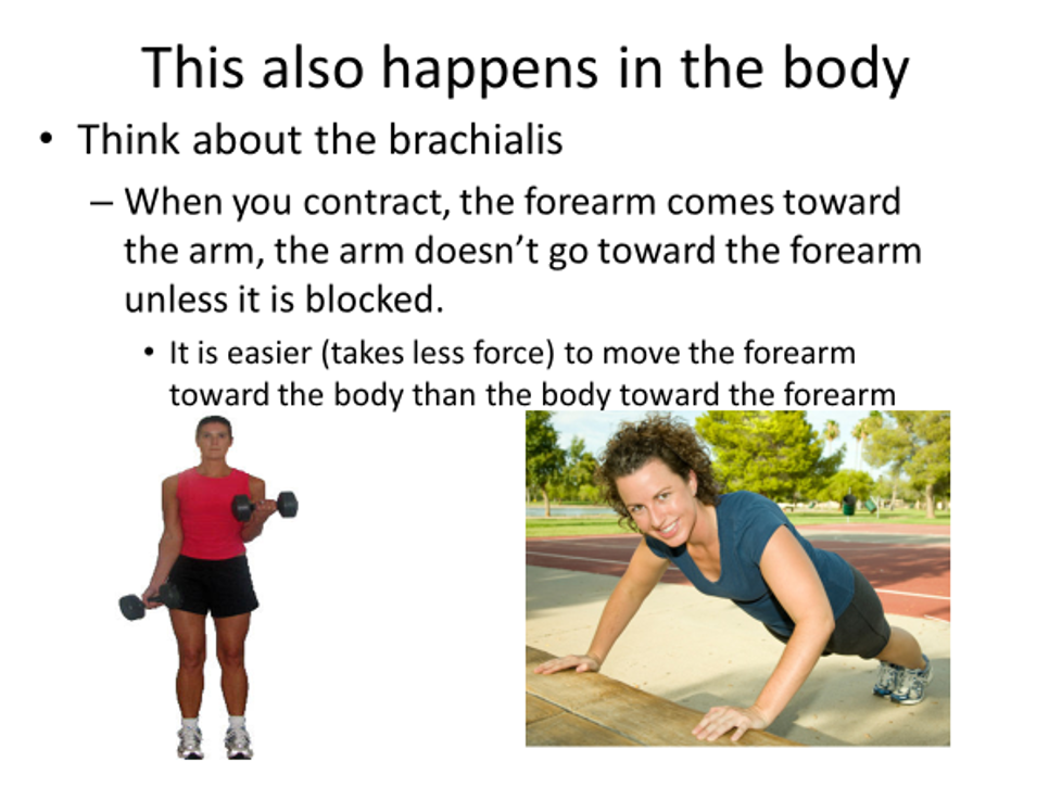 - So we can’t use 5 kg of muscle contraction to counter act 5 kg of resistance.