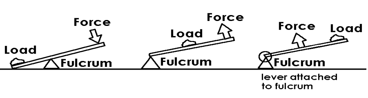 Favors the mechanical advantage of the force or effort (meaning the effect of the effort increases or is multiplied with this type of lever) A 90# girl can move a 200# boulder.