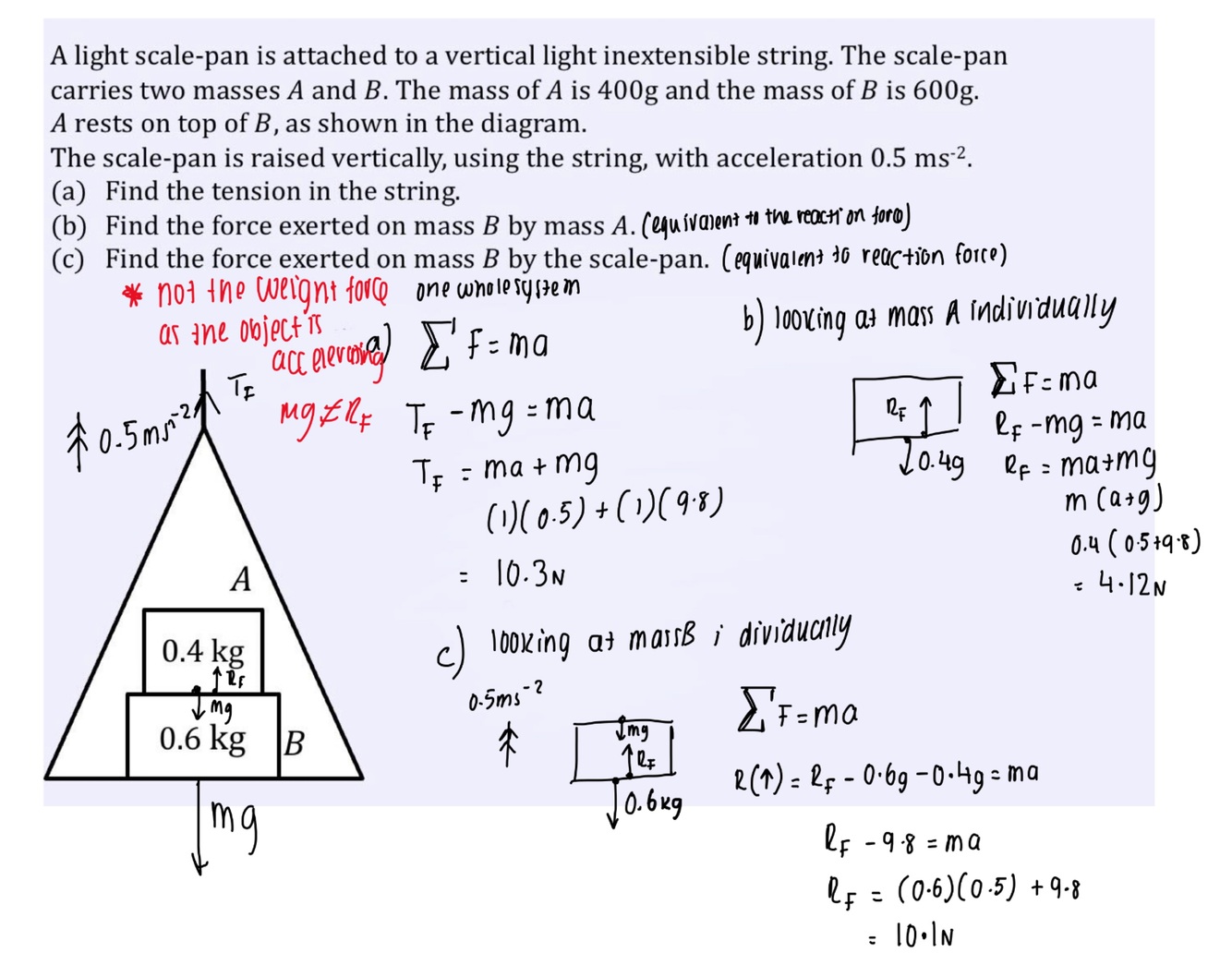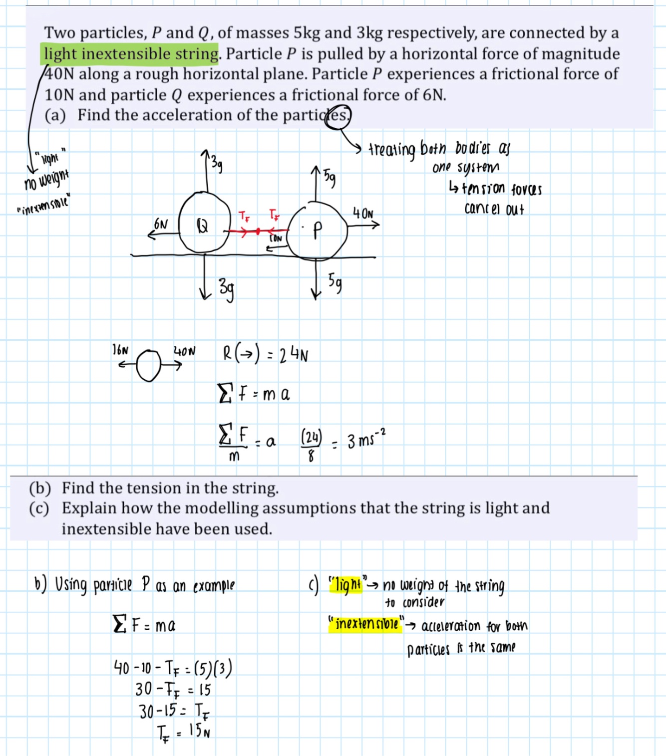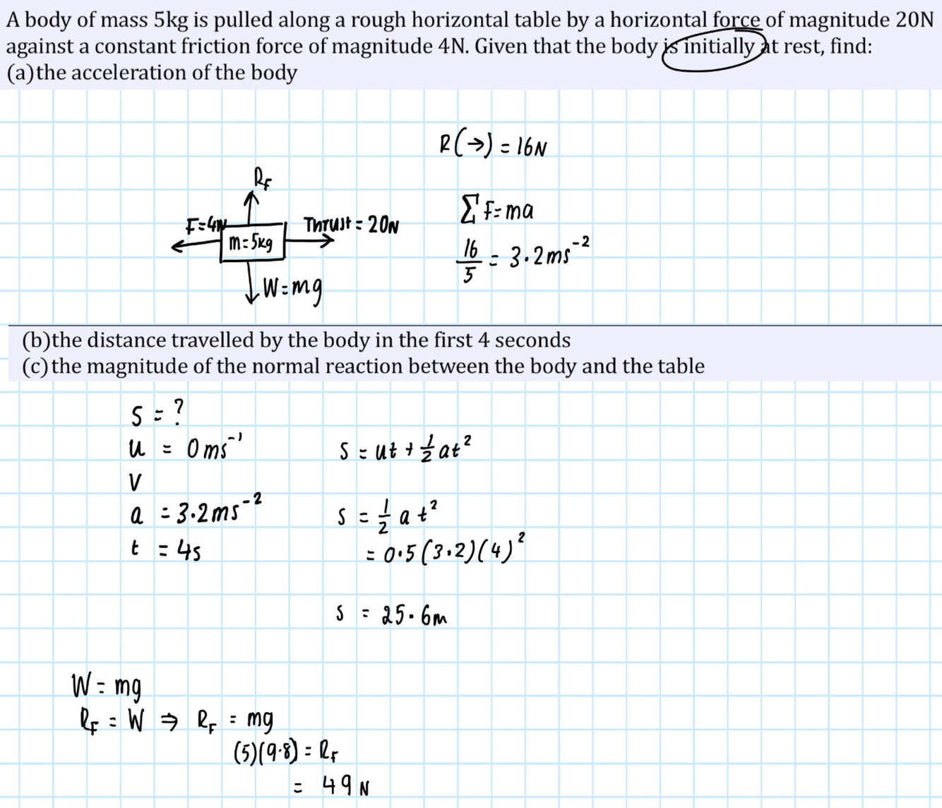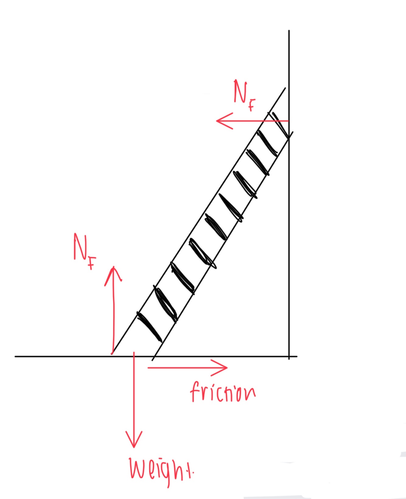 Draw a force diagram of a ladder on rough ground leaning against a smooth wall
