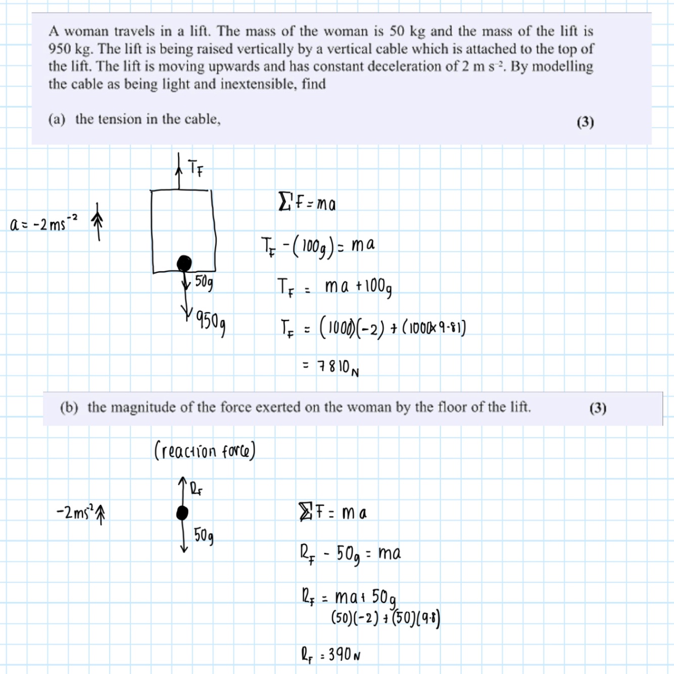 The resultant force in the vertical plane- taking upwards direction as positive
