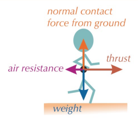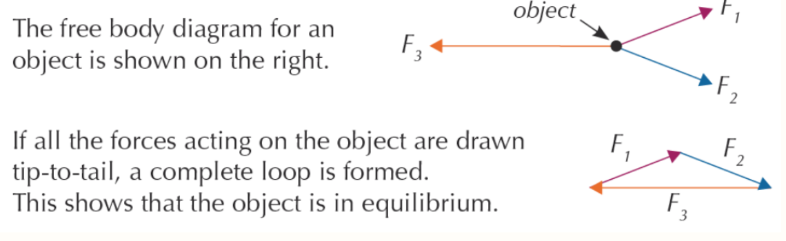 Using a free body diagram, each force represented by arrow and length of arrow shows magnitude.