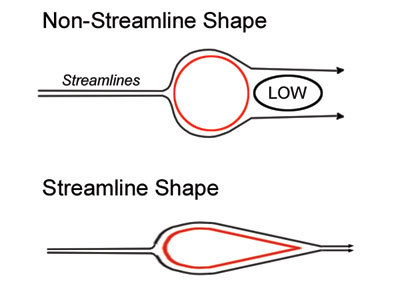 Stremlining is when the shape of an object helps to reduce air resistance, this is done by making the object longer or more pointy
