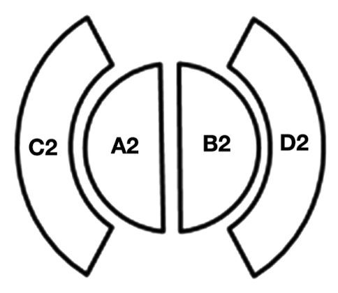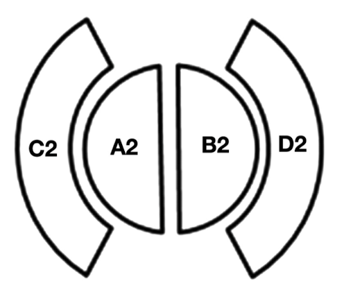 How do these different parts (A2, B2, C2, D2) of the monitor chamber monitor an electron beam?