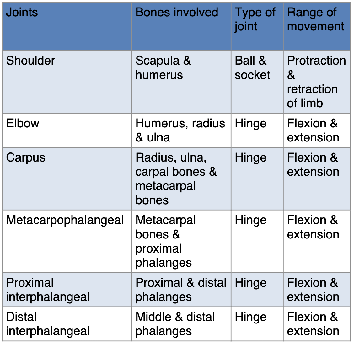 Collateral ligaments – either side of elbow joint for stabilisation