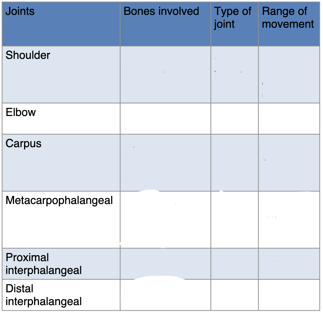 Fill in the table