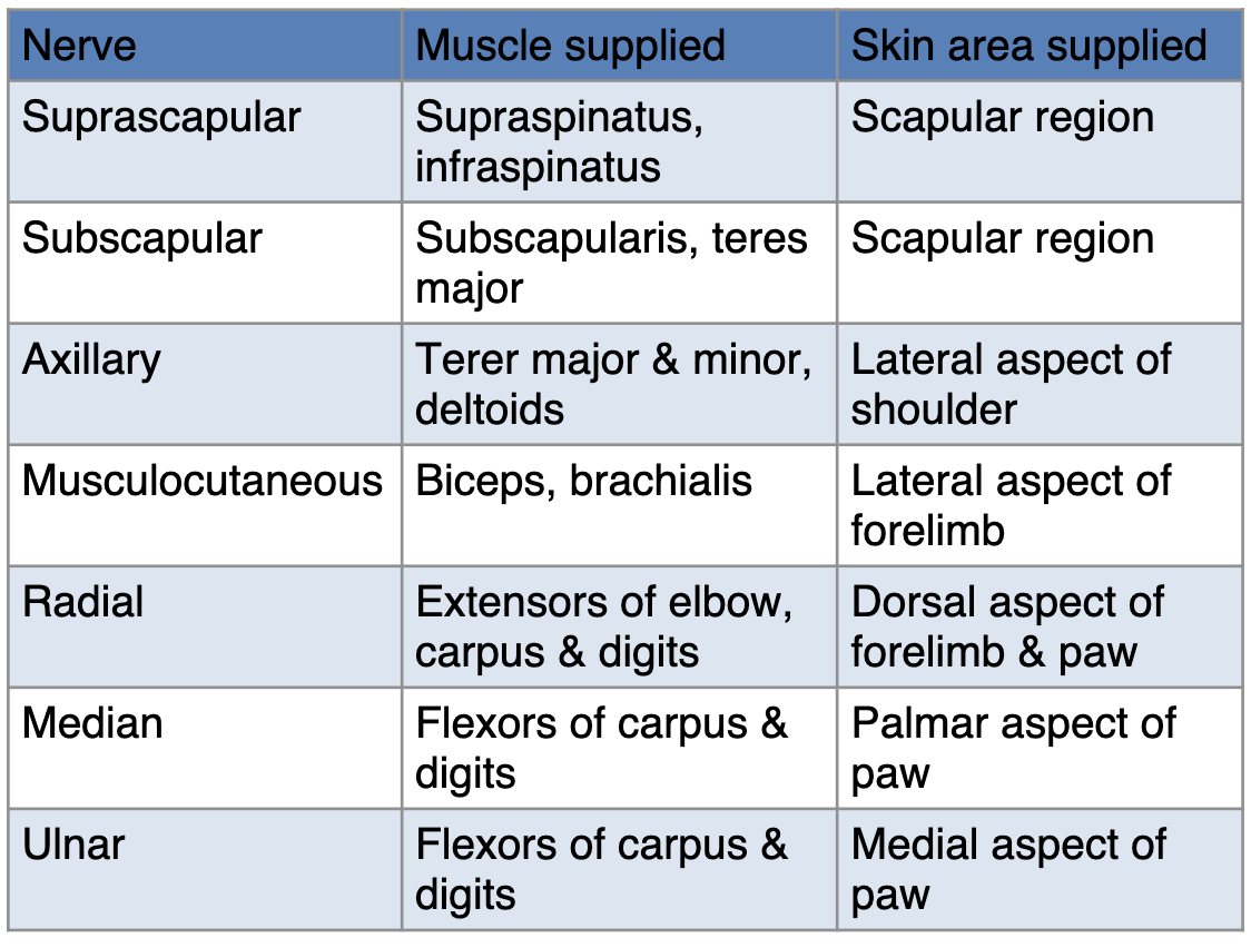 Network of nerves that originate from spinal cord & provide motor & sensory innervation to forelimb