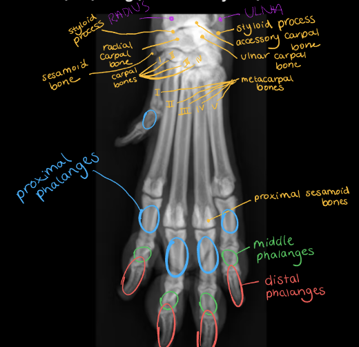 Sesamoid bones – 2 small bones at back of fetlock joint that connect to suspensory ligament