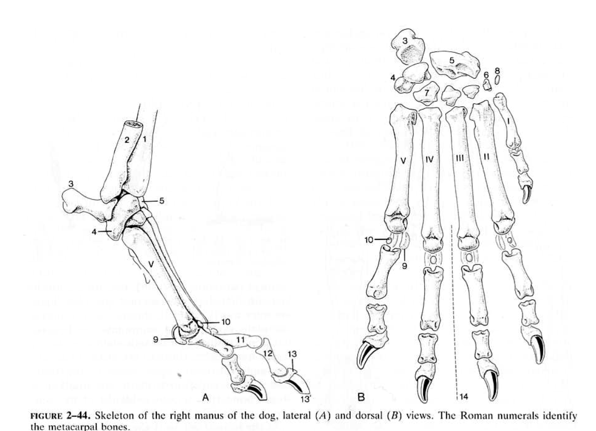 name the first row of carpal bones, from medial to lateral (dog, cat)