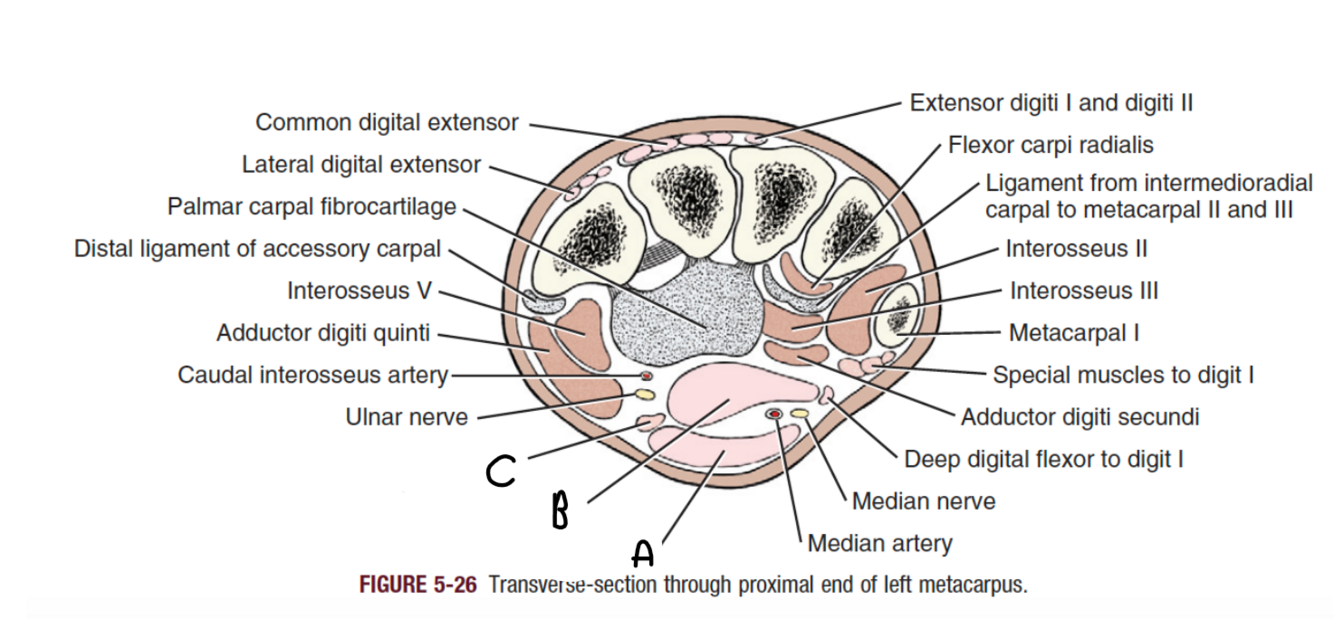 c) RADIAL, MEDIAN, AND CAUDAL INTEROSSEOUS ARTERIES AND VEINS