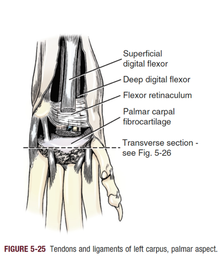 a) tendons and synovial sheaths of the mm. flexor digitorum superficialis and flexor