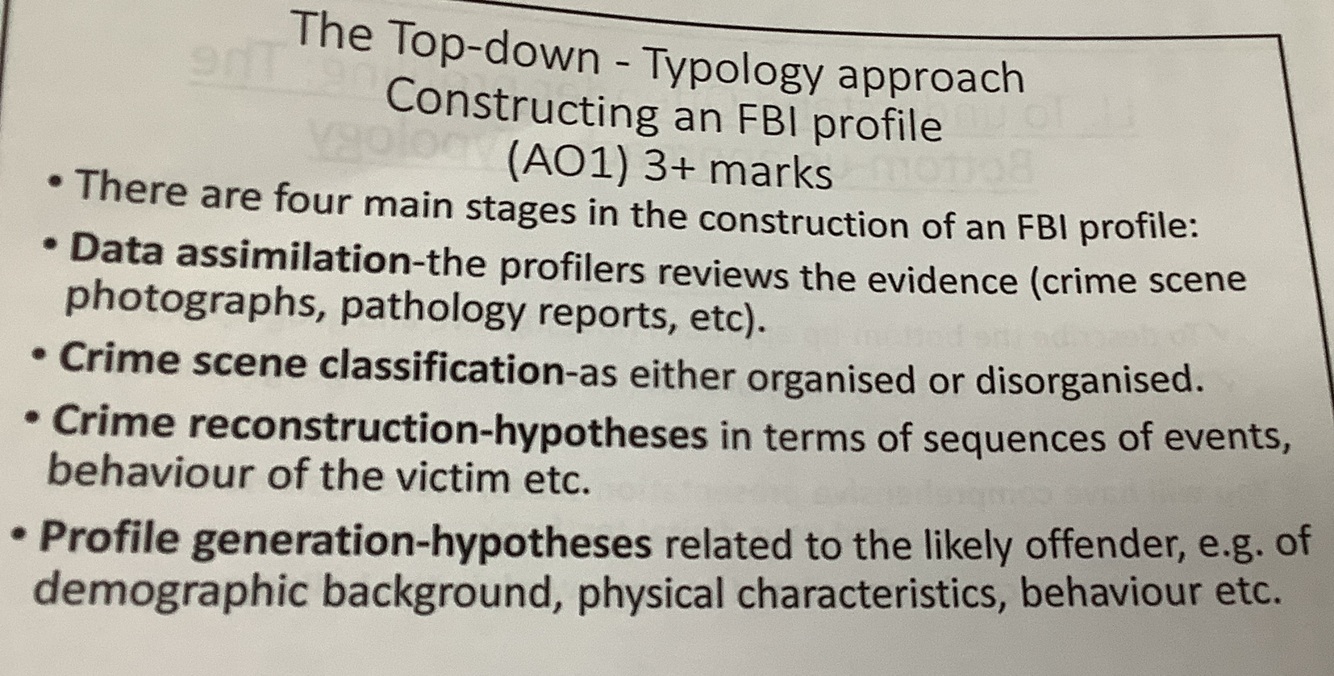 What are the 4 stages of constructing an FBI profile (according to the top-down approach)