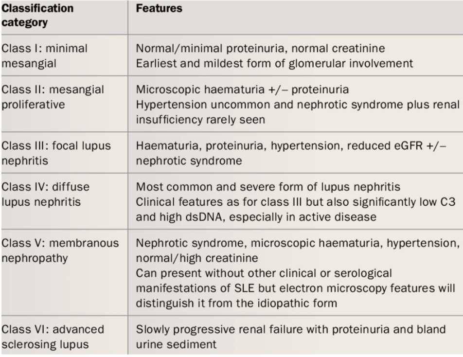 - Normal, Mesengial, Focal, Diffuse, Membranous, Sclerosing