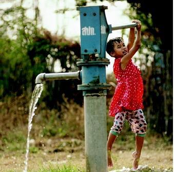 he pumped [the water, etc] (to) [someplace]
