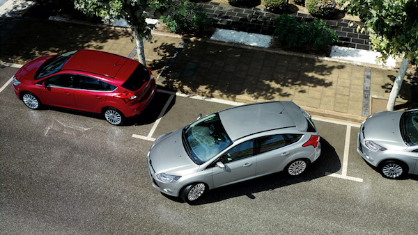 he parked [the car, etc] (in) [the garage,etc] (on) [the street, etc]