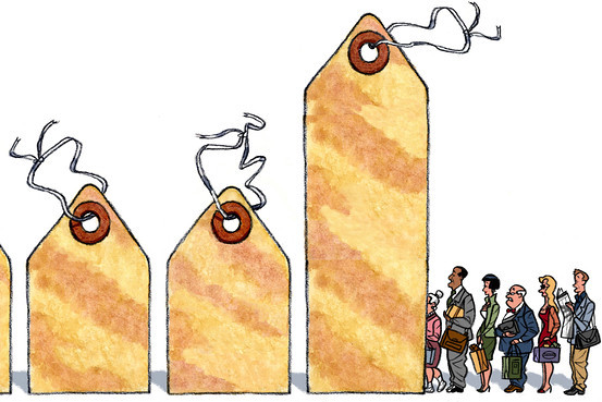 he raised, upped, increased [the price, the rent, etc of something] (on) [someone]