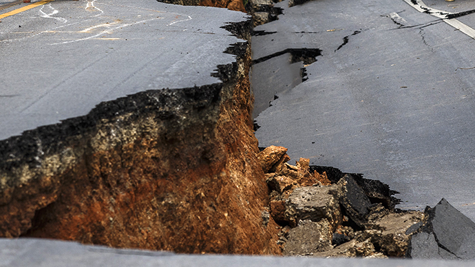 [the ground, the mountain, etc] shook, trembled (from) [an earthquake, etc]
