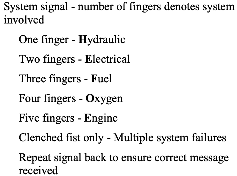 HEFOE signals to indicate effected system(s)