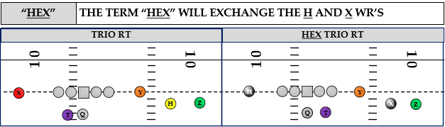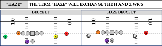 **TELLS WR”s TO THE FIELD TO ALIGN IN A “SQZ”