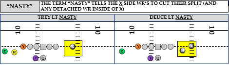 TELLS THE X SIDE WR’s TO CUT THEIR SPLITS (AND ANY DETACHED WR INSIDE OF X)