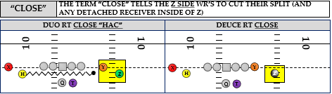 **TELLS THE Z SIDE WR’s TO CUT THEIR SPLIT (AND ANY DETACHED RECEIVER INSIDE OF Z)