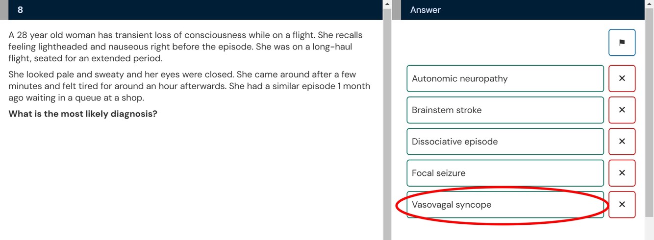 event’s context (long-haul ight, prolonged seating, and prior similar episode while standing for an extended period in a
