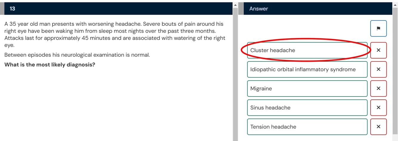 minutes and associated with watering of the right eye, suggest the most likely diagnosis is cluster headaches.