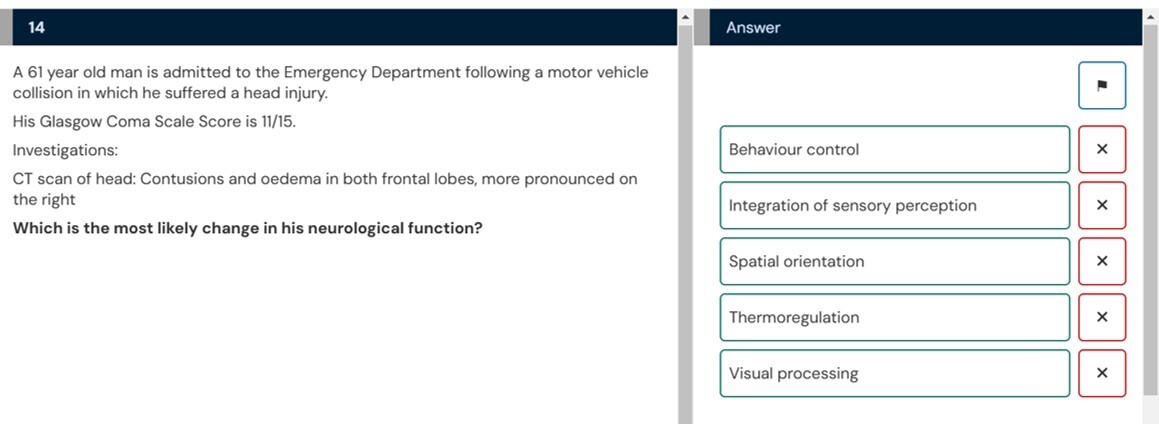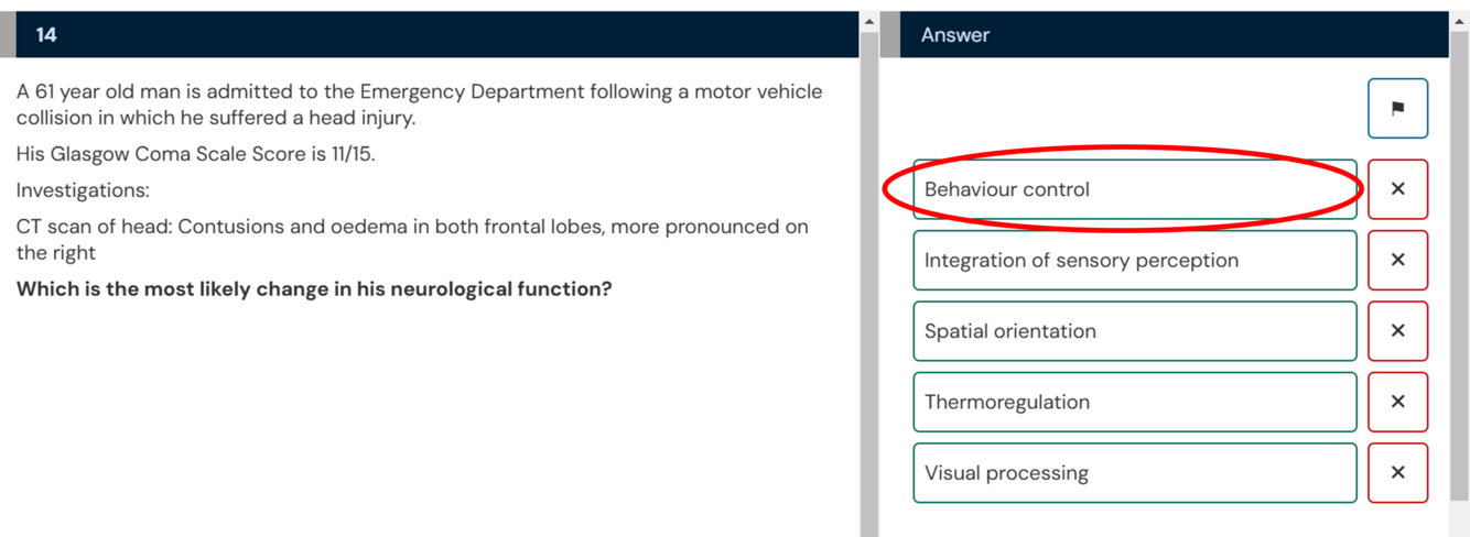 The frontal lobe is responsible for control of behaviour and personality, judgement, and executive