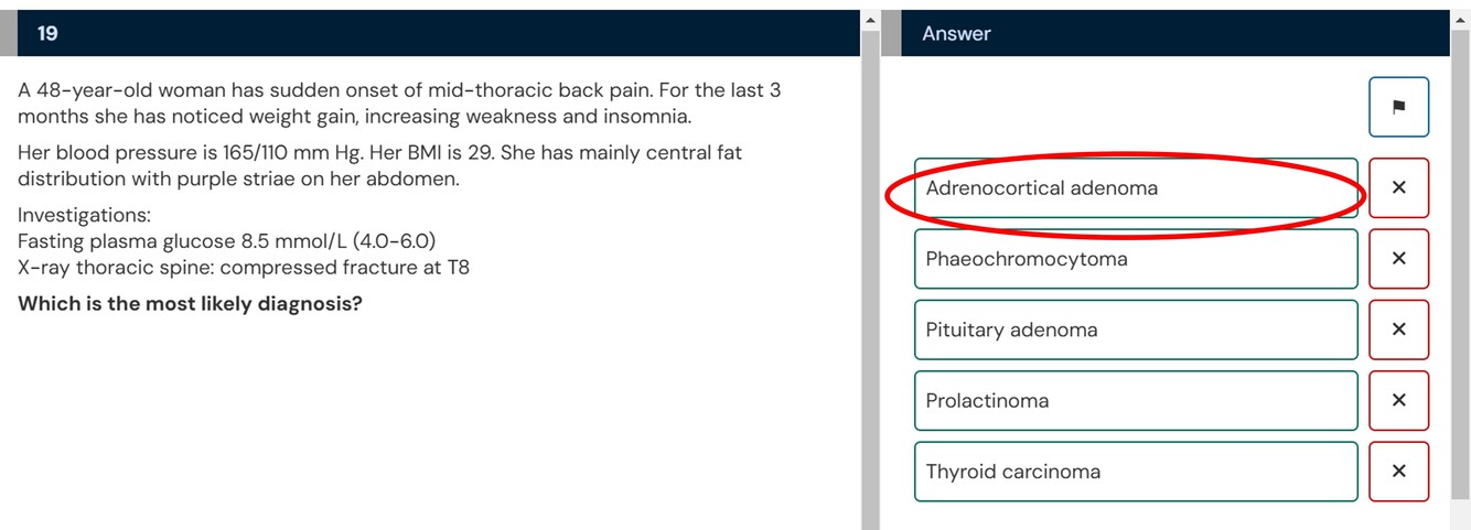 explain the hypertension, osteoporosis and diabetes mellitus, which are all symptoms of too much glucocorticoid rather