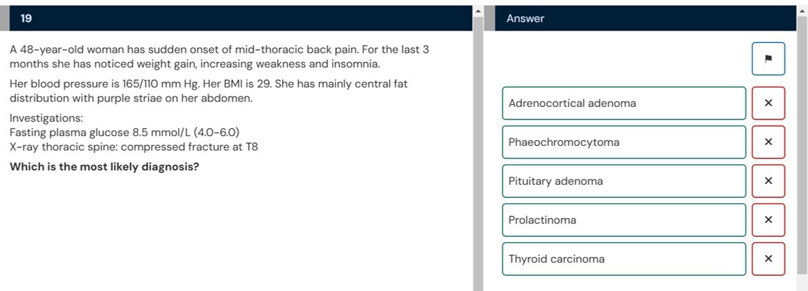 D: Incorrect: A thyroid carcinoma does not explain the nding of diabetes mellitus, although the vertebral fracture could