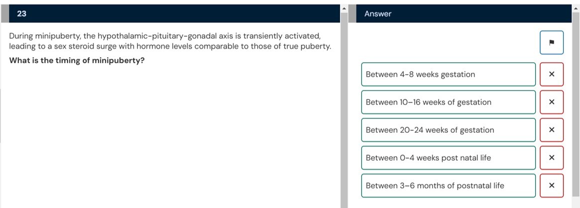 Minipuberty occurs in the rst 3–6 months of life in both sexes. The rise of gonadotropin and sex steroid