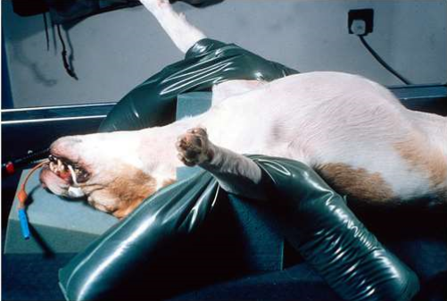 Taking ventro-dorsal radiographs of the thorax with the dog in dorsal recumbency, as shown, is recommended for getting radiographic images of the heart BECAUSE it places the heart closer to the radiographic plate?