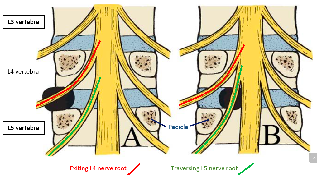 which nerve root will be impinged in a paracentral L4/L5 disc prolapse