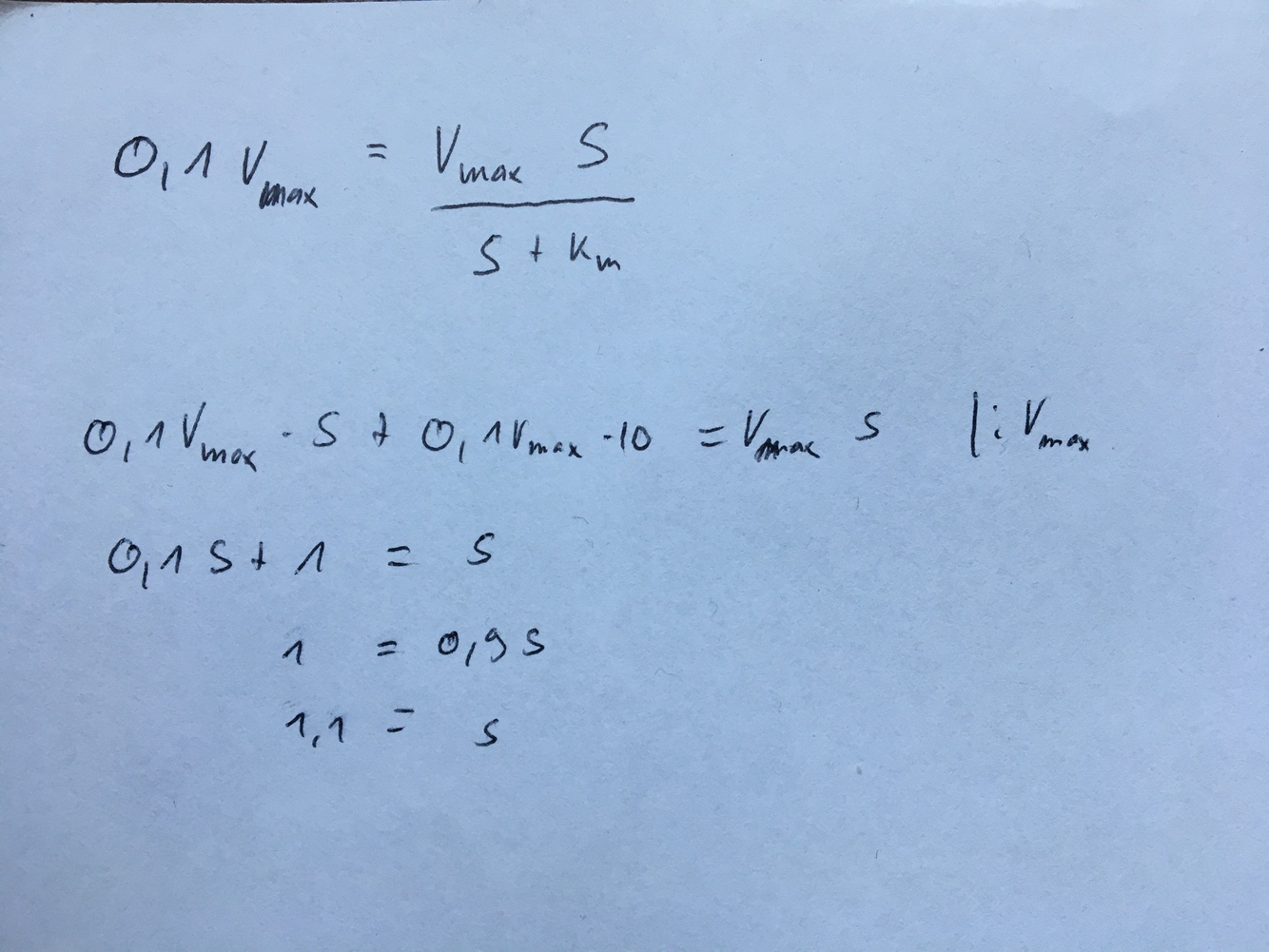 Berechnung der Substratkonzentration für 0,1 Vmax bei KM = 10 mM