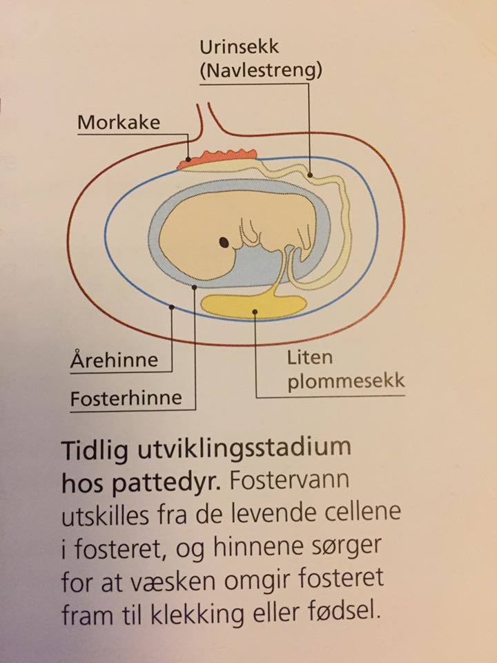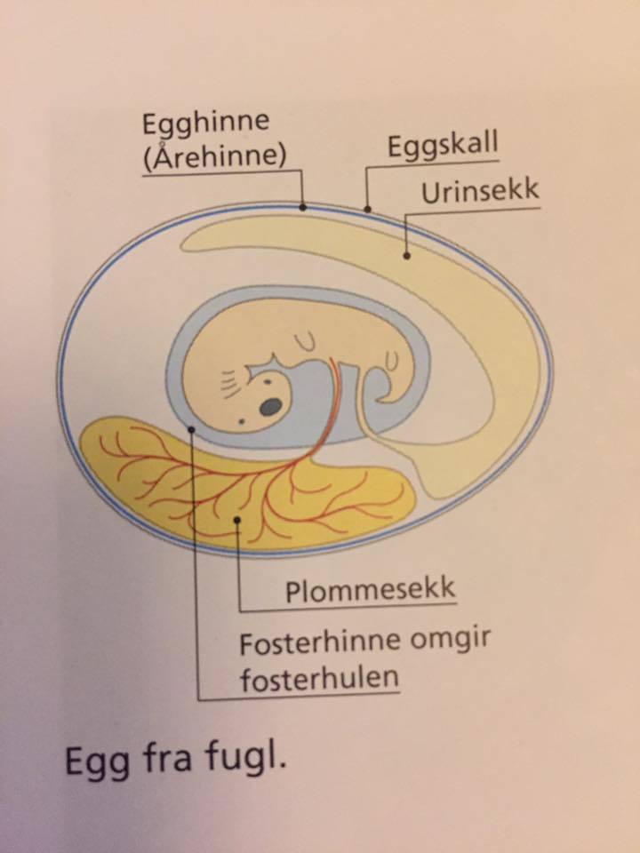 -Væskehinne inne i egget sørger for at fosteret ikke uttørkes.